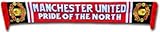 This official Man Utd jacquard scarf has MANCHESTER UNITED-Pride of the North written across the middle and is now available for immediate delivery. 100% acrylic and made in the UK. Code: SCARF222B